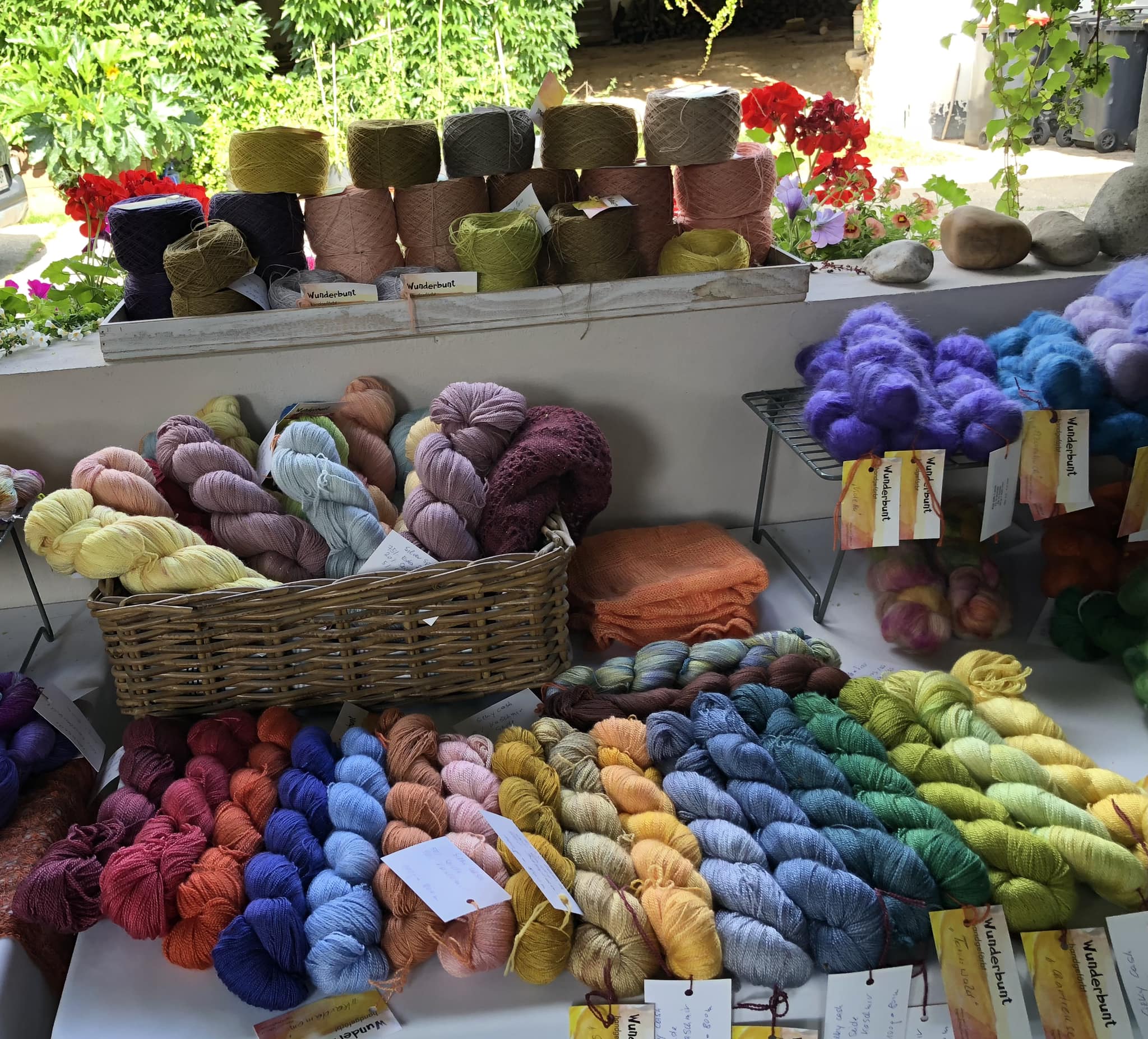 Ich freue mich auf euren Besuch ! Wir stricken im schattigen Garten und ihr könnt gerne in meinen wunderbunten Wollvorräten stöbern!!!