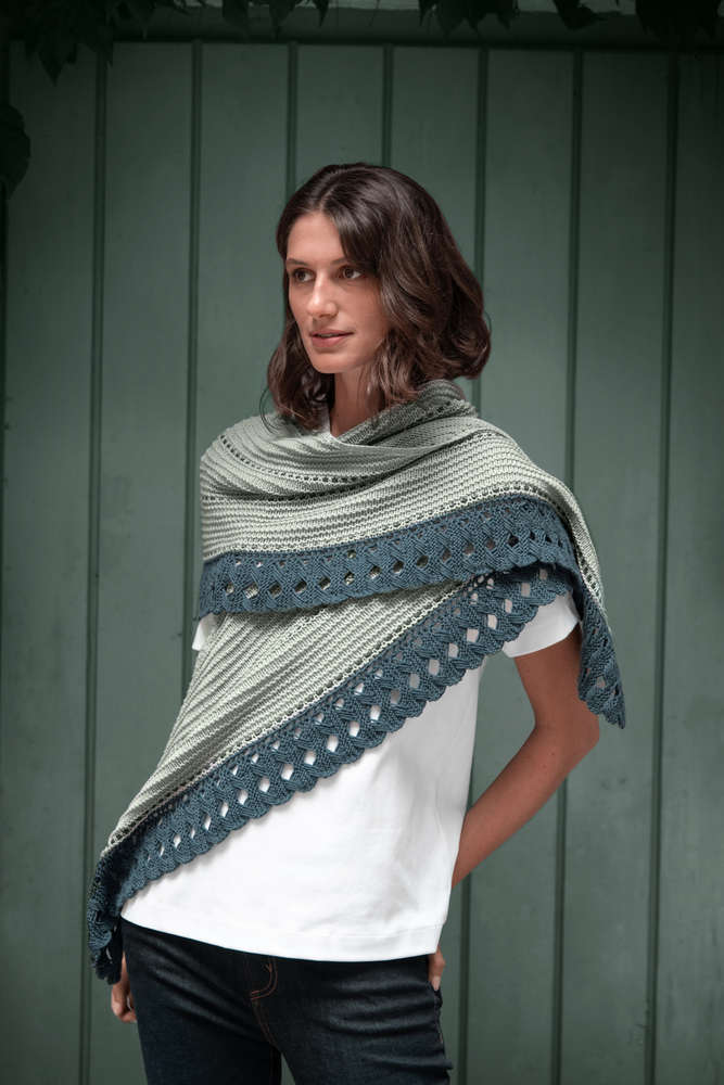 Speziell für unsere neue Farbpalette hat die schwedische Designerin Matilda Kruse das Tuch Rosemary (deutsch: Rosmarin) in unserer Cheeky Merino Joy entworfen. Sein Name ist von unseren neuen Grüntönen inspiriert und erinnert an den Duft sommerlicher Kräuter. In dem halbmondförmigen Tuch entstehen horizontale Linien durch Elemente in kraus rechts und Hebemaschen. Rosemary ist ein Strickprojekt zum Entspannen, dessen interessante Abschlusskante dann etwas herausfordernder ist.